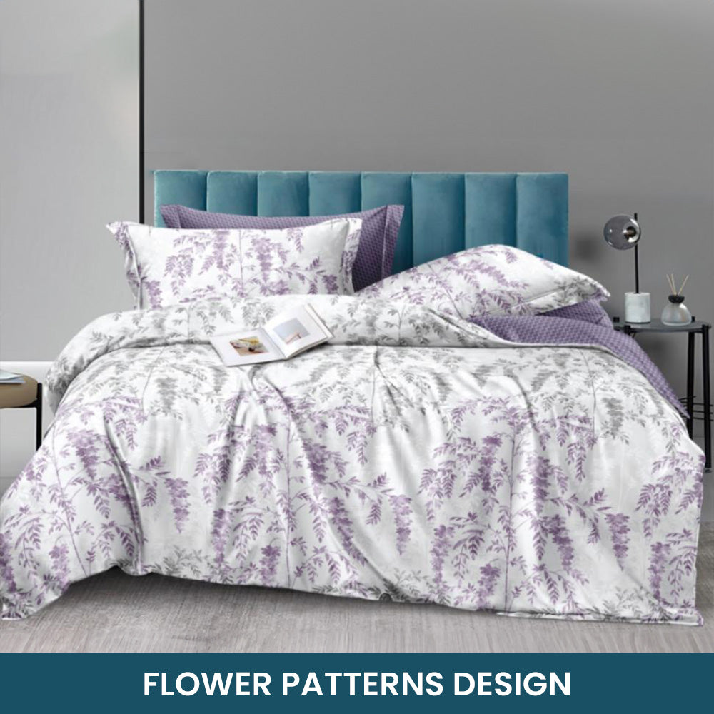 تحتوي كل مجموعة على ملاءة واحدة ملائمة، وغطاء لحاف واحد (لا يشمل اللحاف)، و4 أكياس وسادة بحجم 50 × 80 سم للحصول على مظهر منسق كامل.