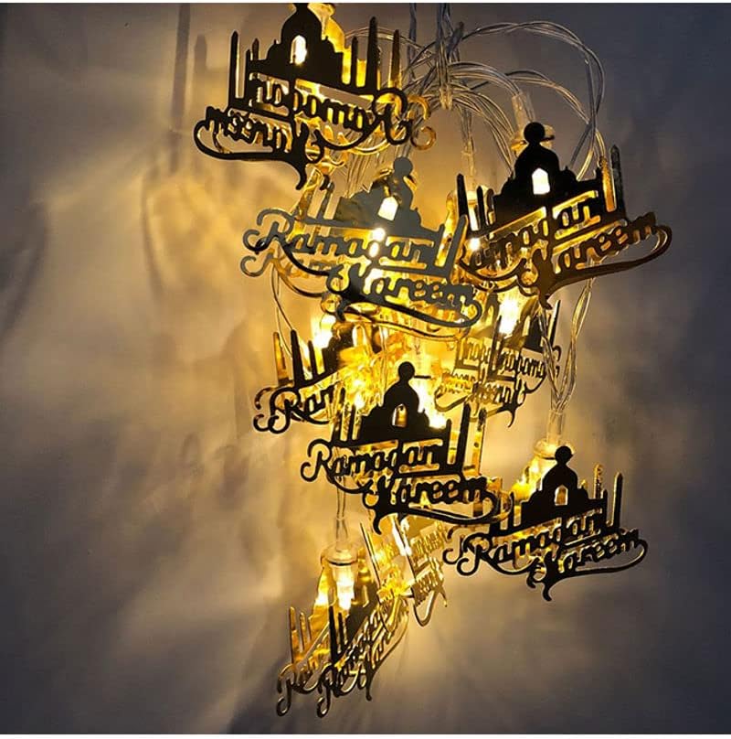 سلسلة أضواء رمضان ٢٠ ليد، تعمل بالبطارية، للديكور الاحتفالي (إضاءة ليد ذهبية)