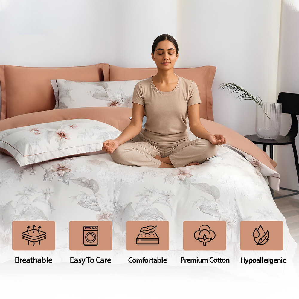 تحتوي كل مجموعة على ملاءة واحدة ملائمة، وغطاء لحاف واحد (لا يشمل اللحاف)، و4 أكياس وسادة بحجم 50 × 80 سم للحصول على مظهر منسق كامل.