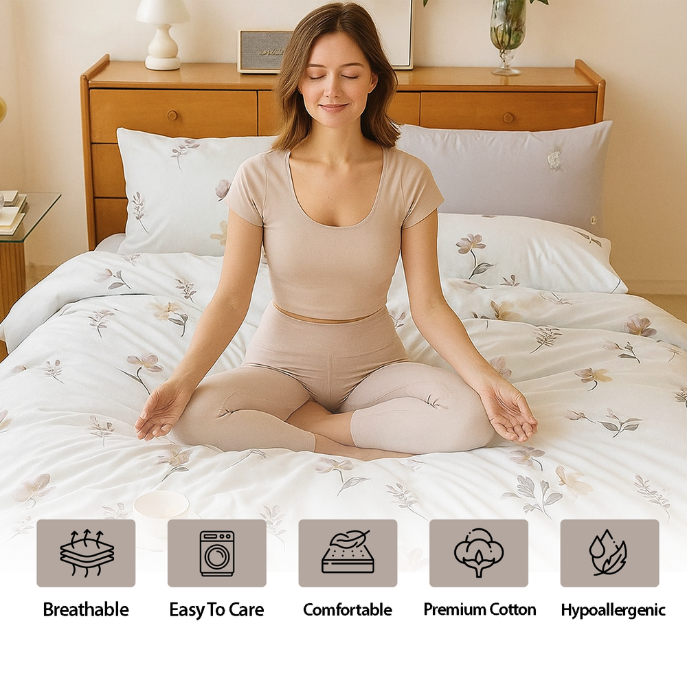 مصنوع من ألياف دقيقة من مزيج القطن الفاخر، القماش ناعم وجيد التهوية ومتين ومصمم لتعزيز النوم بشكل أفضل دون أن يتلاشى بعد الغسيل.
