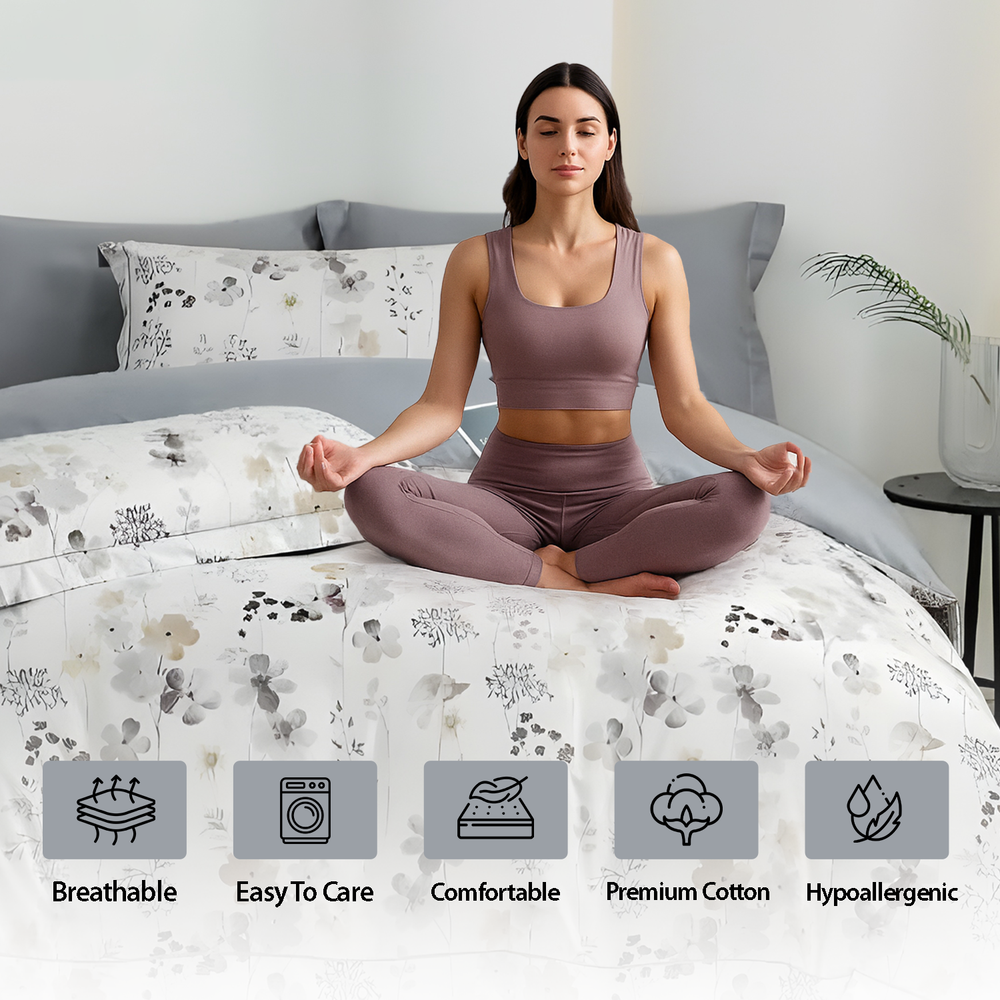 مصنوع من ألياف دقيقة من مزيج القطن الفاخر، القماش ناعم وجيد التهوية ومتين ومصمم لتعزيز النوم بشكل أفضل دون أن يتلاشى بعد الغسيل.
