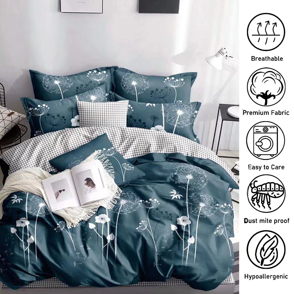 تحتوي كل مجموعة على ملاءة واحدة ملائمة، وغطاء لحاف واحد (لا يشمل اللحاف)، و4 أكياس وسادة بحجم 50 × 80 سم للحصول على مظهر منسق كامل.