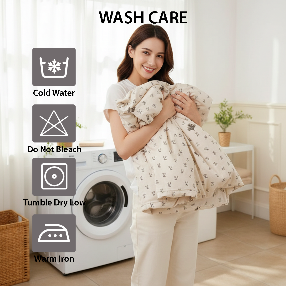 يجمع هذا الطقم بين المتانة طويلة الأمد والتصميم الخالد، ليُكمل ديكور أي غرفة نوم مع سهولة العناية به. فهو قابل للغسل في الغسالة، ومقاوم للتجاعيد، ولا يتطلب كيًا، مما يجعل العناية به بسيطة ومريحة. كما يُعد طقم أغطية السرير "موونسي" المُعبأ بعناية هدية مثالية لحفلات الزفاف، أو حفلات الانتقال إلى منزل جديد، أو أي مناسبة خاصة، ليُضفي لمسة من الفخامة على كل منزل.