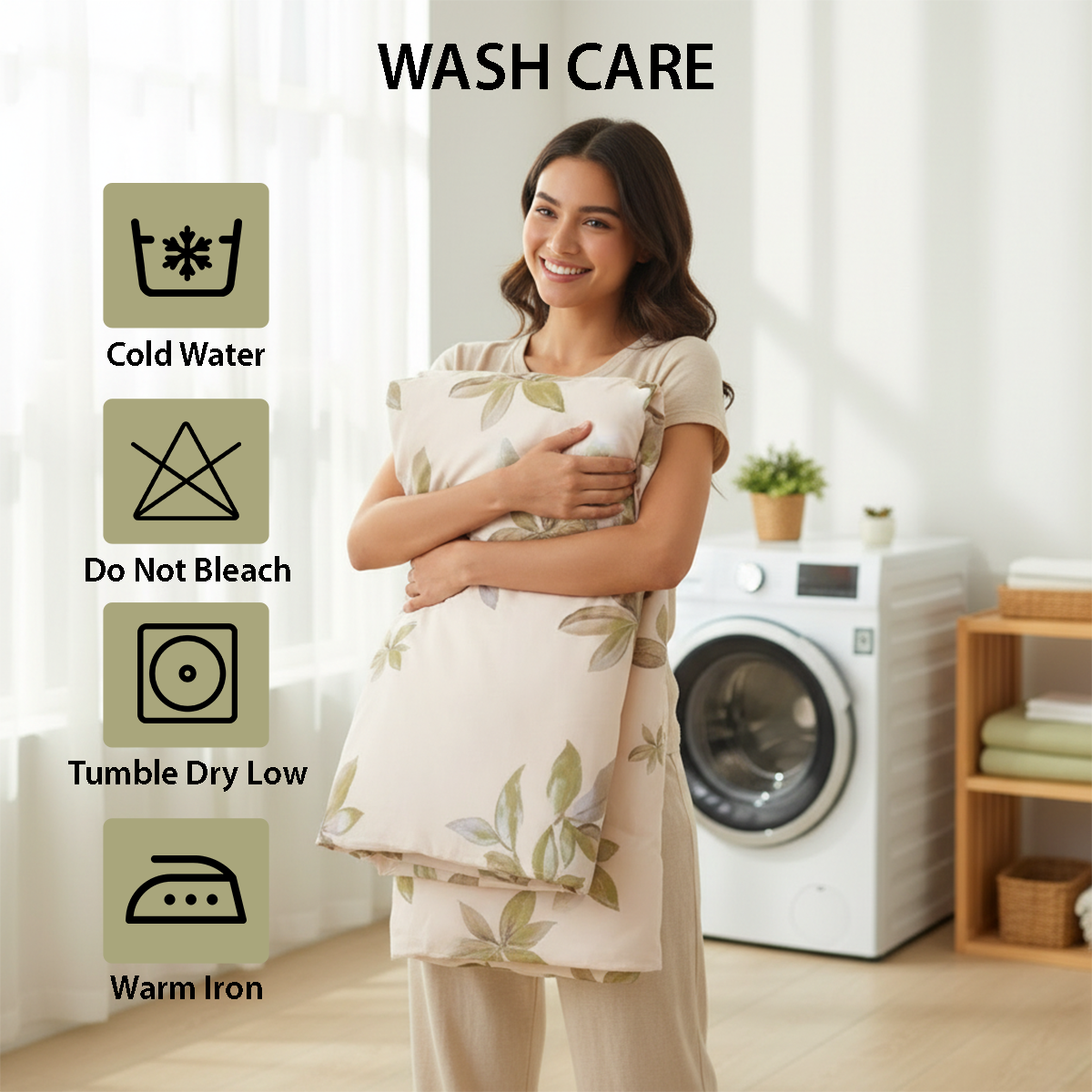 يجمع هذا الطقم بين المتانة طويلة الأمد والتصميم الخالد، ليُكمل ديكور أي غرفة نوم مع سهولة العناية به. فهو قابل للغسل في الغسالة، ومقاوم للتجاعيد، ولا يتطلب كيًا، مما يجعل العناية به بسيطة ومريحة. كما يُعد طقم أغطية السرير "موونسي" المُعبأ بعناية هدية مثالية لحفلات الزفاف، أو حفلات الانتقال إلى منزل جديد، أو أي مناسبة خاصة، ليُضفي لمسة من الفخامة على كل منزل.