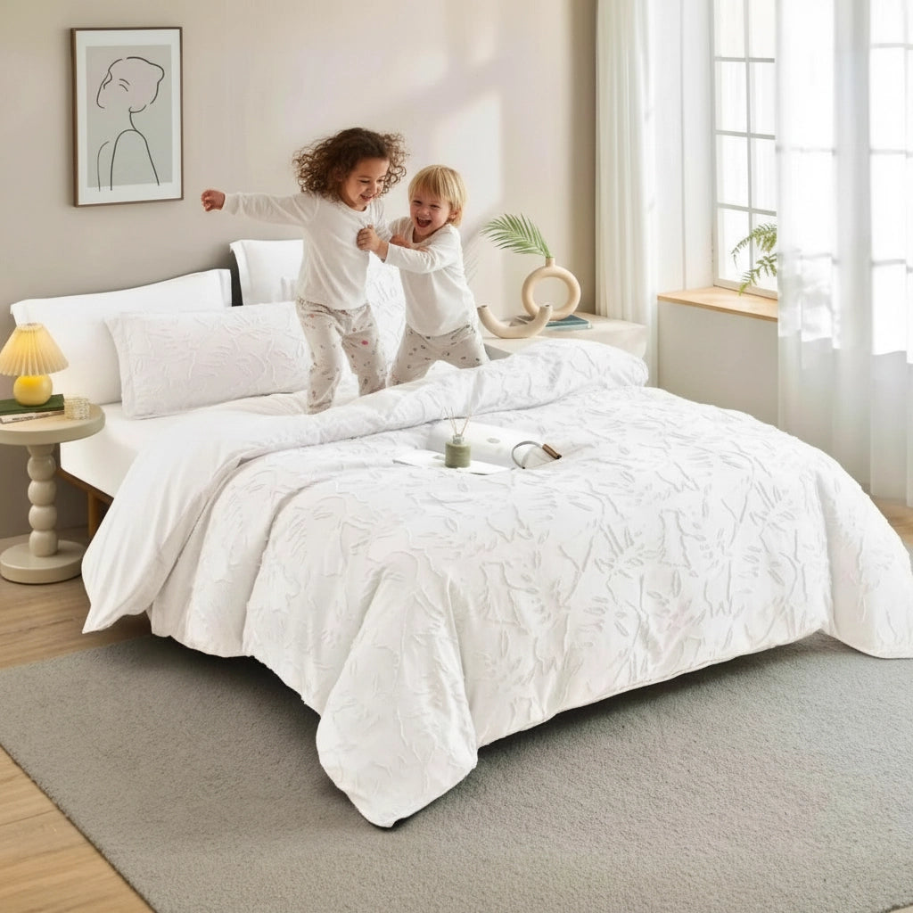 Simple white bedding set with pillowcase, duvet cover and more