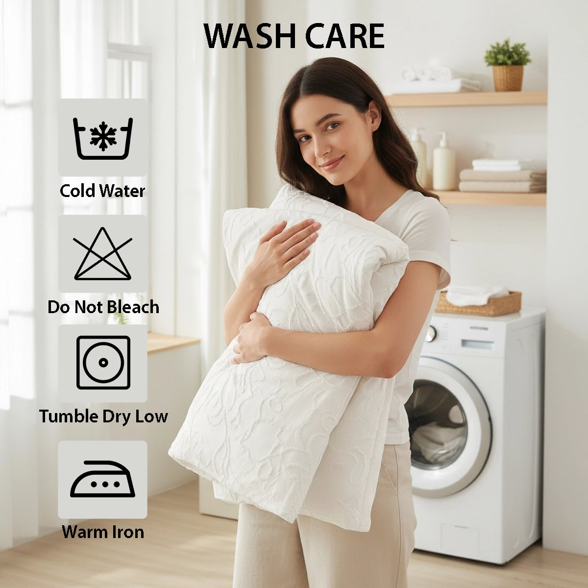مصنوع من ألياف دقيقة مصقولة، يوفر القماش ملمسًا ناعمًا وأملسًا ومتانة طويلة الأمد. يسمح بمرور الهواء وينظم درجة الحرارة، مما يعزز تدفق الهواء لنوم هانئ ومريح. هذه الملاءات مقاومة للتجاعيد والبهتان والبقع والانكماش. سهلة الصيانة، ويمكن غسلها في الغسالة بالماء البارد وتجف بسرعة. تجنب استخدام المبيضات أو الكريمات التي تحتوي على عوامل تبييض للحفاظ على اللون.