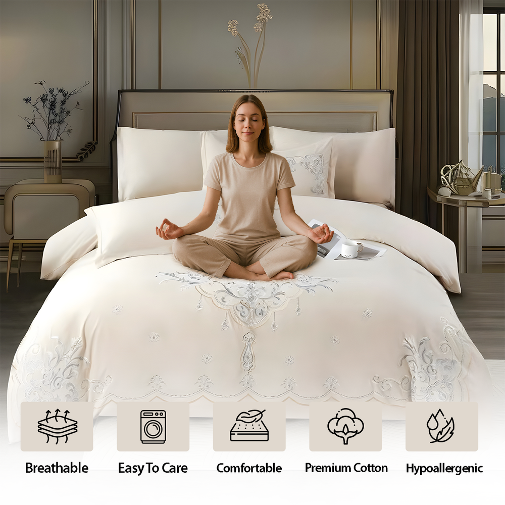 This luxurious bedding set is not only visually stunning but also practical. It’s wrinkle-resistant, machine washable, and easy to care for—perfect for everyday use. Whether you're refreshing your own room or gifting someone for a wedding or housewarming, this elegant embroidered set makes a thoughtful and timeless choice.