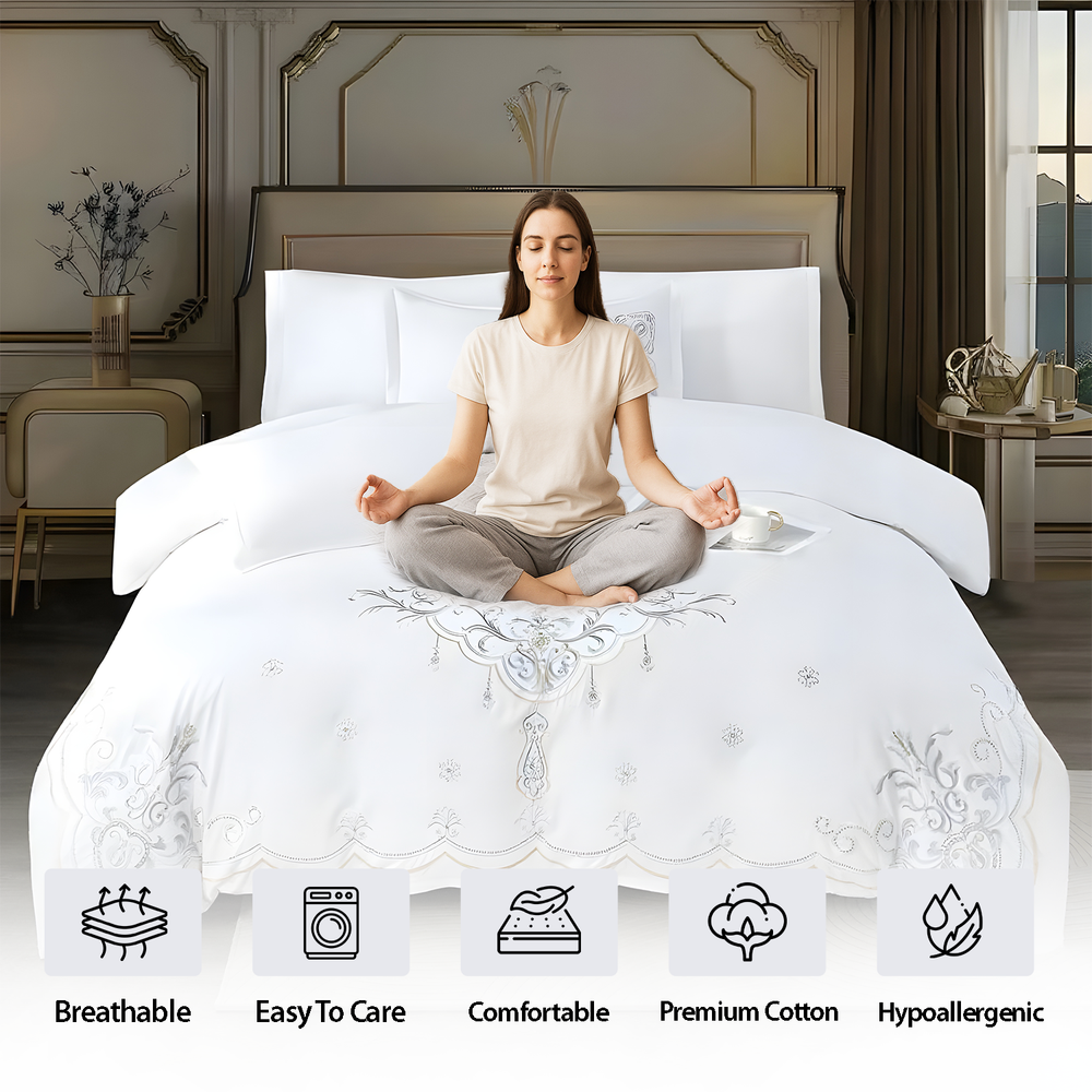 This luxurious bedding set is not only visually stunning but also practical. It’s wrinkle-resistant, machine washable, and easy to care for—perfect for everyday use. Whether you're refreshing your own room or gifting someone for a wedding or housewarming, this elegant embroidered set makes a thoughtful and timeless choice.