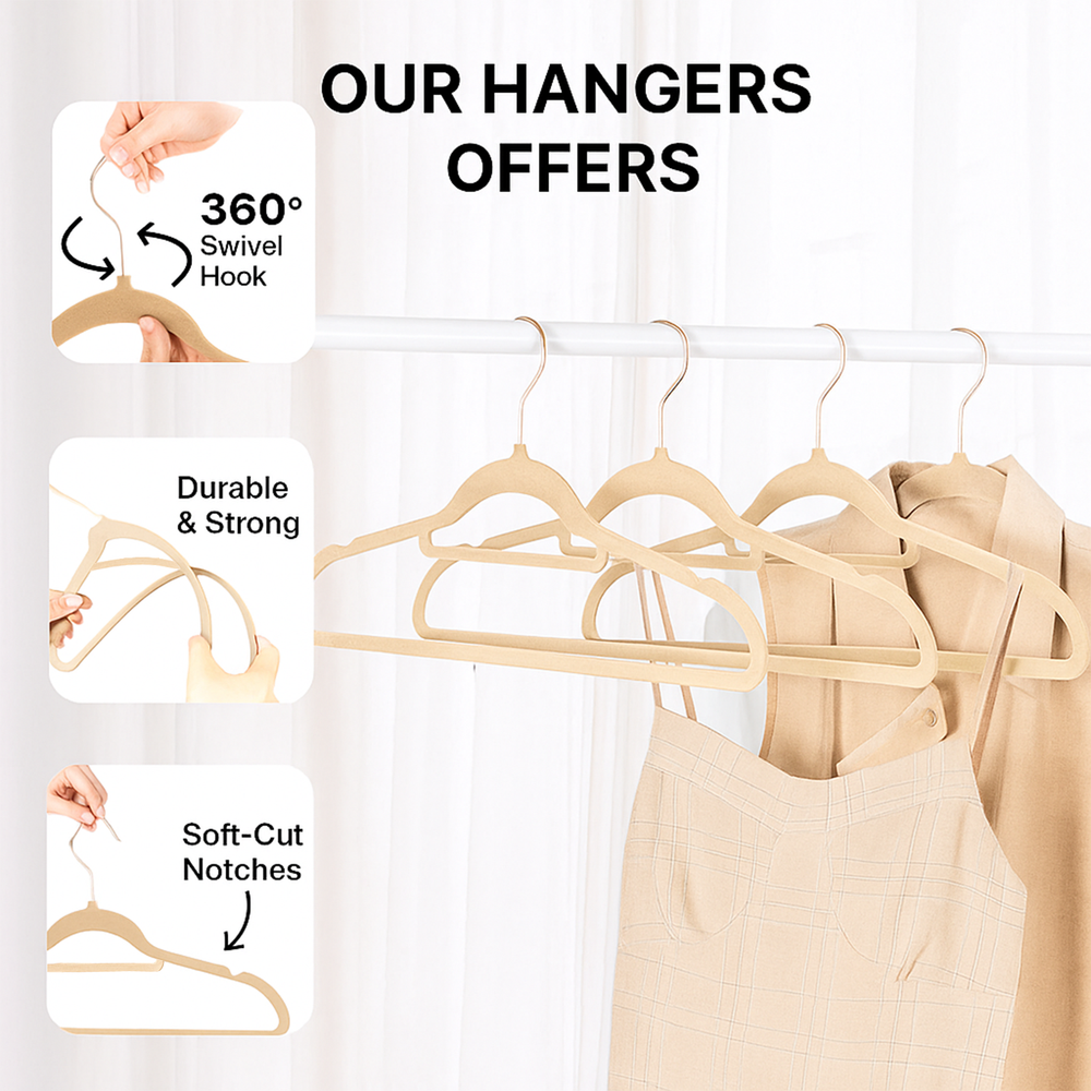 Yes, our velvet hangers are available in a range of elegant colors, including black, beige, pink, white, and grey.