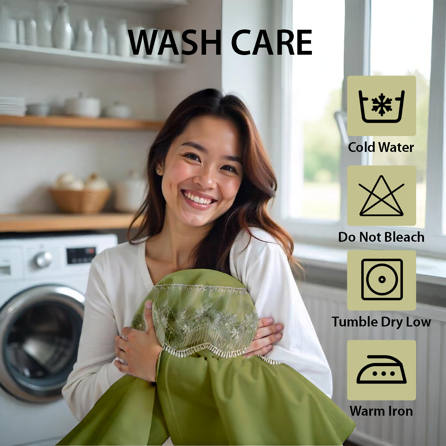 The embroidery is crafted for durability and elegance. With proper care—gentle wash and mild detergents—it stays fresh and intact even with regular use.