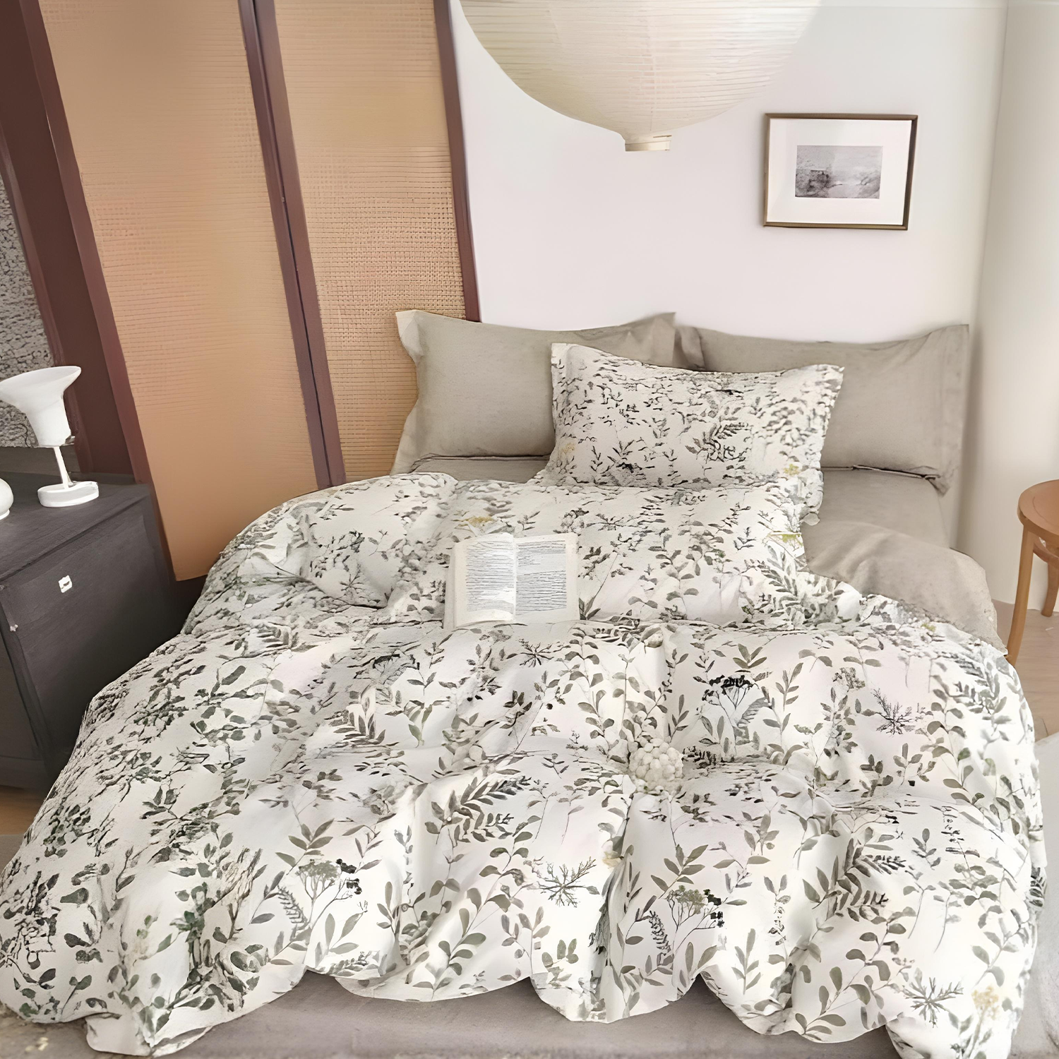 Botanical Print King Size 6 PCs Bedding Set – Soft Bed Set for Modern Bedrooms (6FS127)