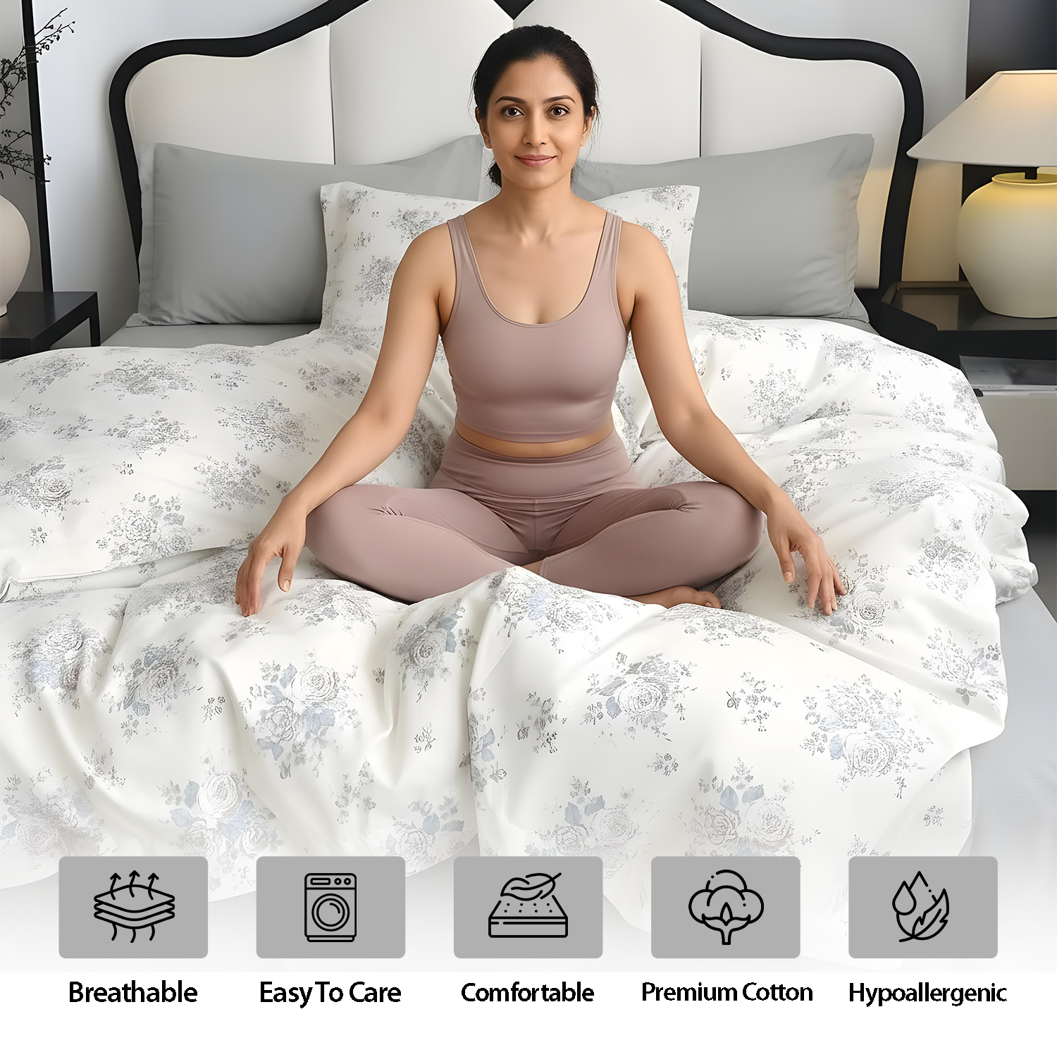 Made from a premium cotton-blend microfiber, the fabric is soft, breathable, durable, and designed to promote better sleep without fading after washing.