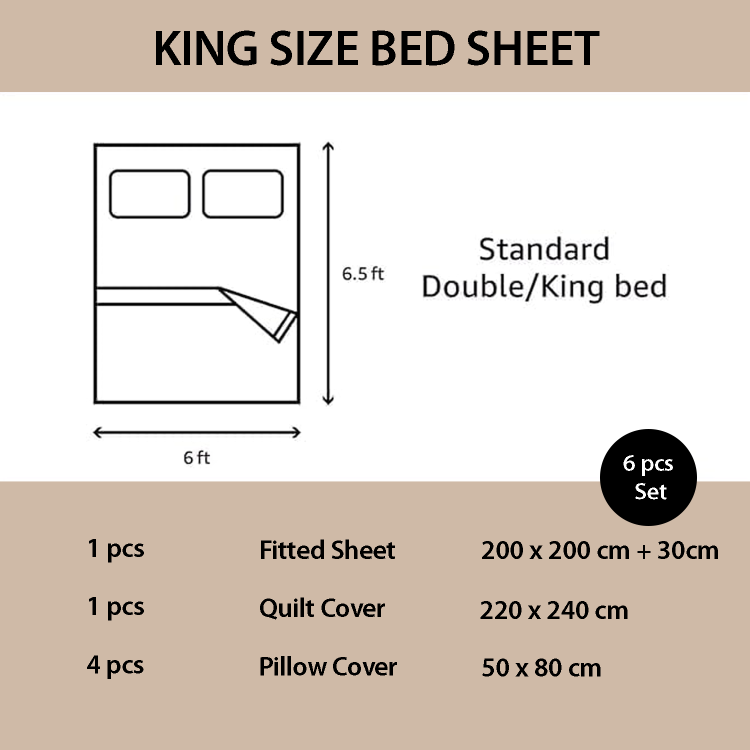 King Size Bedding Set – Elegant 6 PCs Duvet Cover, Fitted Sheet and Pillowcase  (6FS154)