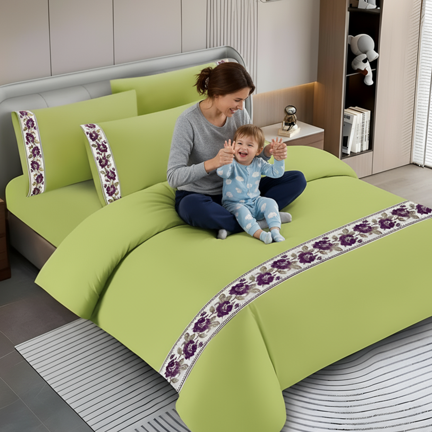 Made from a premium cotton-blend microfiber, the fabric is soft, breathable, durable, and designed to promote better sleep without fading after washing.