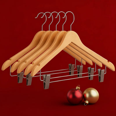 Premium High-Grade Wooden Pants Hangers - Non-Slip Grip With Adjustable Metal Clips