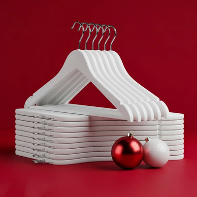 Wooden 10 PCs White Clip Hangers Set with Metal Clips – Premium White Wooden Hangers