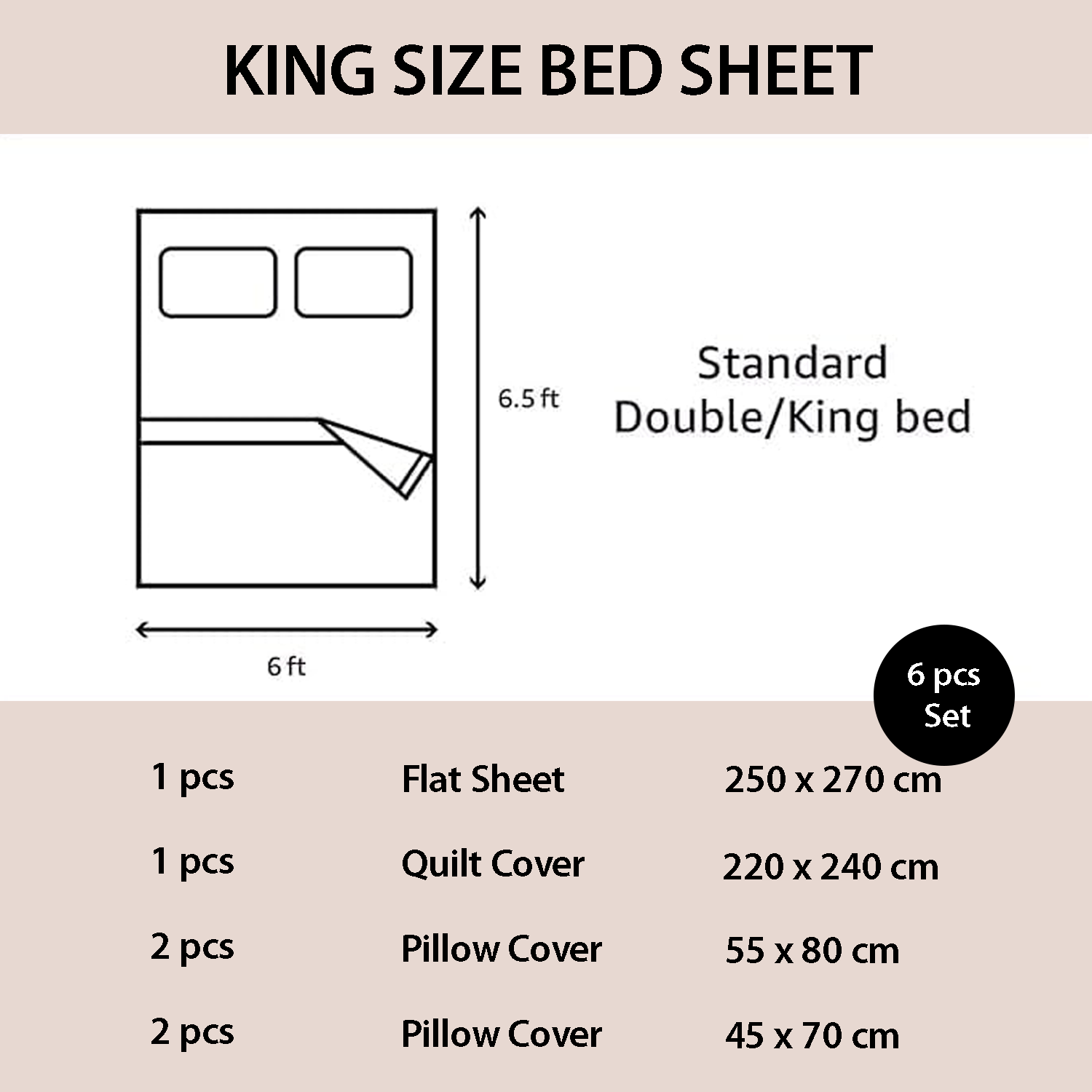 Item 6 PCs King Size Bed Sheet Set