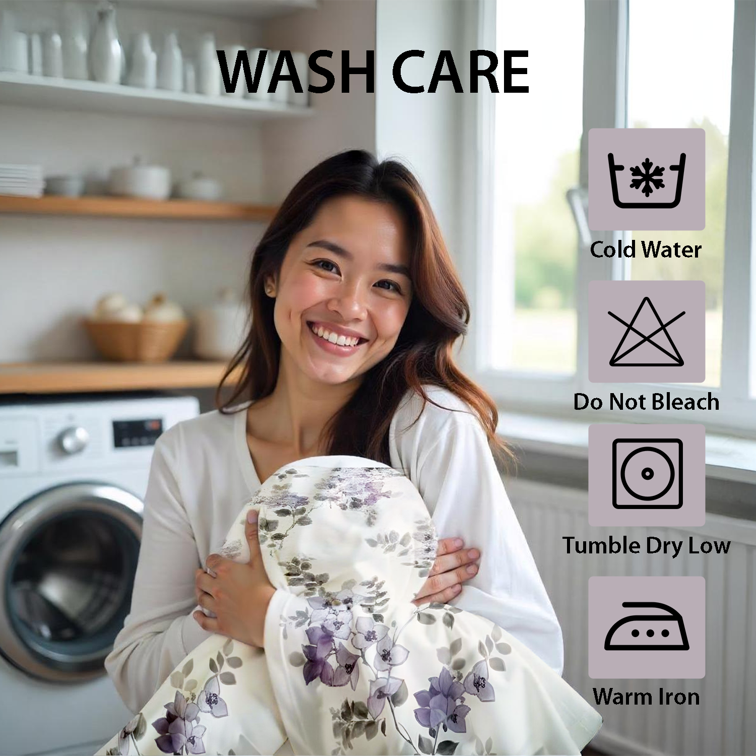 Yes, it’s machine washable. Use mild detergent with cold or warm water, tumble dry on low heat, and avoid bleach or harsh chemicals to keep it soft and vibrant.