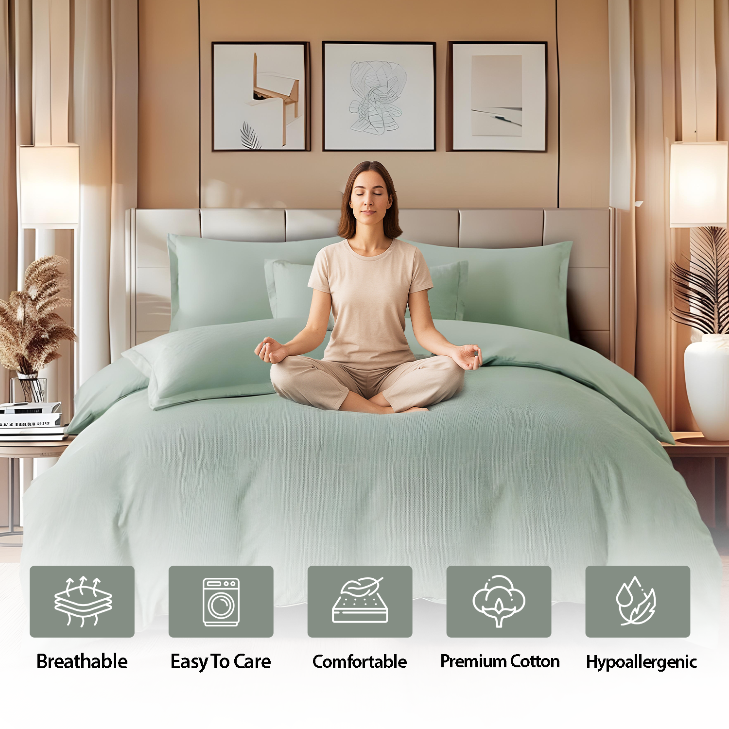 Made from a premium cotton-blend microfiber, the fabric is soft, breathable, durable, and designed to promote better sleep without fading after washing.