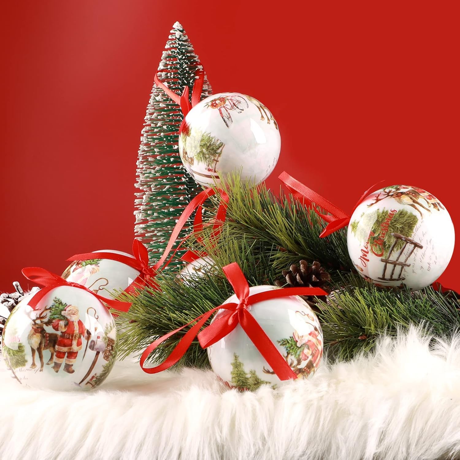 Add festive elegance to your celebrations with our 14 Pcs Christmas Balls Ornaments Set, beautifully packed in a reusable gift box with ribbon. Each ornament features charming Christmas-themed prints like Santa Claus, snowflakes, landscapes, and more, adding richness and harmony to any Christmas tree, garland, or wreath. Made from lightweight, shatterproof poly-foam, these ornaments are safe, durable, and perfect for decorating with kids, elders, or pets around.