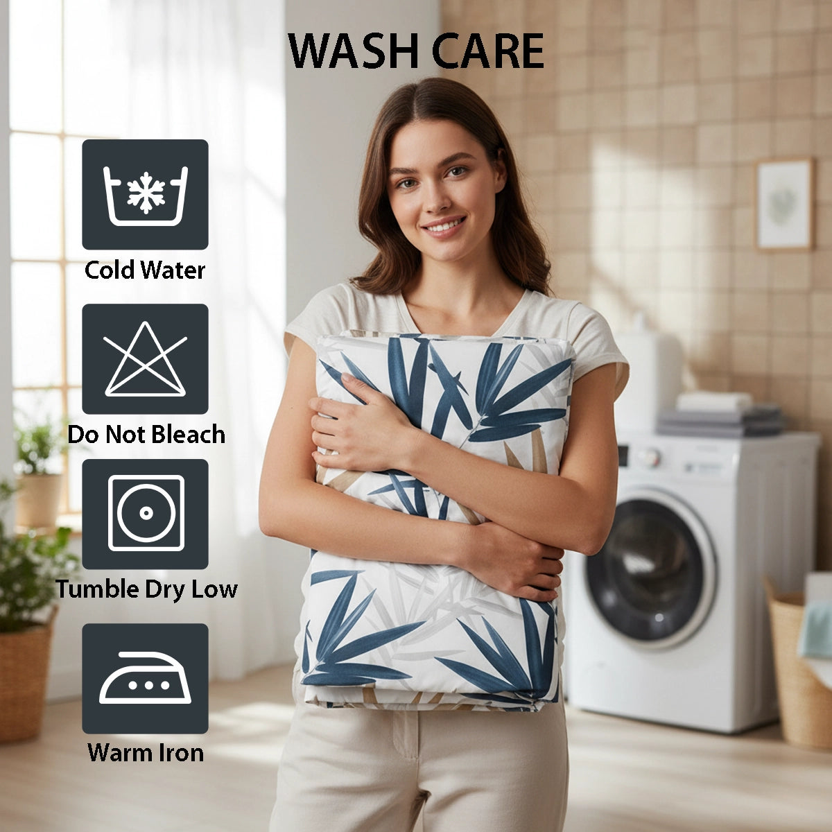 Yes, it’s machine washable. Use mild detergent with cold or warm water, tumble dry on low heat, and avoid bleach or harsh chemicals to keep it soft and vibrant.