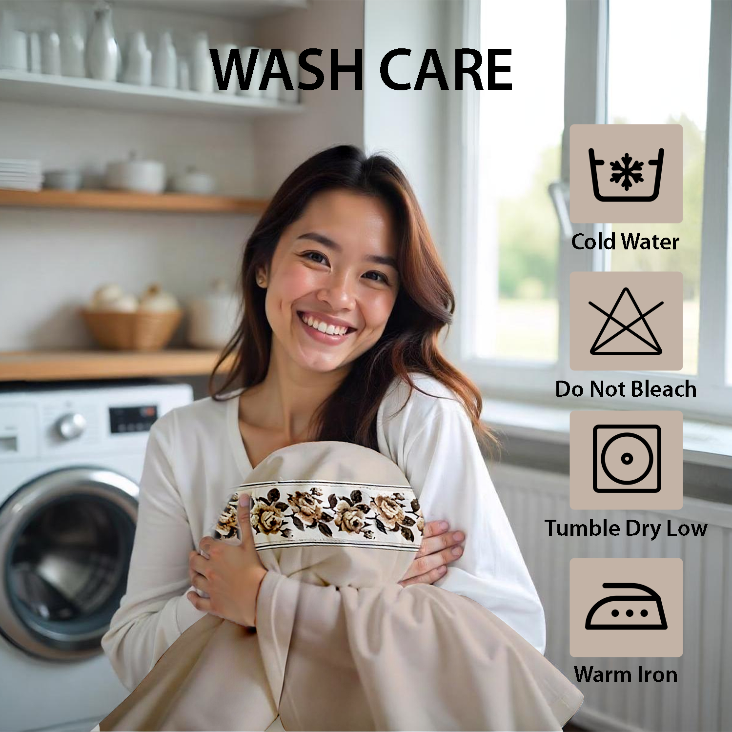 Yes, it’s machine washable. Use mild detergent with cold or warm water, tumble dry on low heat, and avoid bleach or harsh chemicals to keep it soft and vibrant.